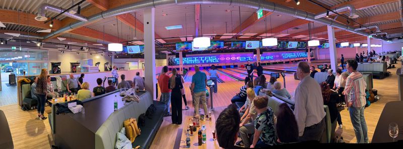 Zum diesjährigen Mitarbeiterevent haben wir den Feierabend mal etwas anders eingeläutet: Erst gab’s ein leckeres Buffet, danach wurden die Bowling-Teams ausgelost – damit auch Kolleg*innen aus verschiedenen Bereichen mal gemeinsam auf Punktejagd gehen konnten.